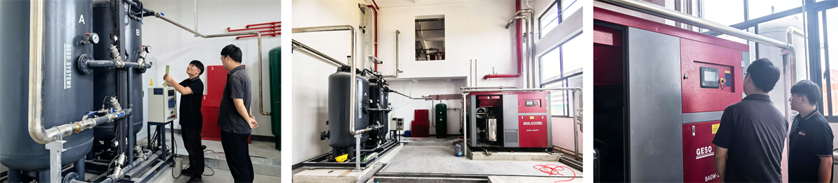 -Älykäs jälkikäsittelyjärjestelmä (mukaan lukien kolmivaiheinen tarkkuussuodattimet ja korkean tehokkuuden jäähdytetyt kuivausrummut) on konfiguroitu kosteuden, öljyn sumujen ja hiukkasten poistamiseksi monivaiheisen puhdistuksen kautta. Järjestelmän paineen pudotus on <0,3 bar, pidentäen merkittävästi laitteiden käyttöikää.